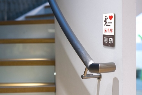 The company says that in trials involving more than 250,000 stair/lift journeys, stair climbing increased by up to 29% when the building was equipped with ‘smart signs’, which give specific calorie-burning information for that particular set of stairs. There’s also an associated app so office workers can track and ‘gamify’ stair climbing, which apparently prompts a 500% jump in stair climbing.